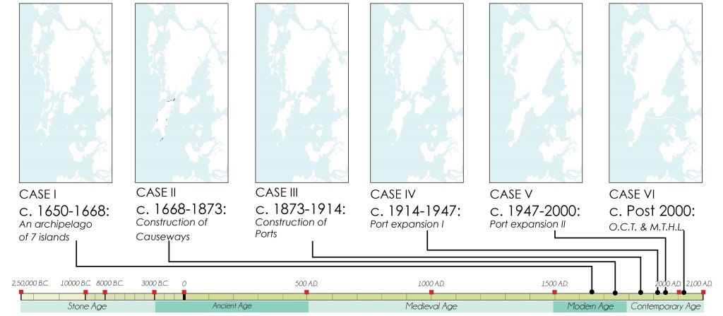 In order to understand the changing oceanography and geomorphological processes at work in the Mumbai Harbour catalyzing silting, the major anthropogenic activities that have altered the coastline of the island city have been considered from the first known records of inhabitation on the archipelago to the present day. and indicated in Fig.11. The major anthropogenic activities that altered the coastline of Mumbai can be divided into 6 cases and include: